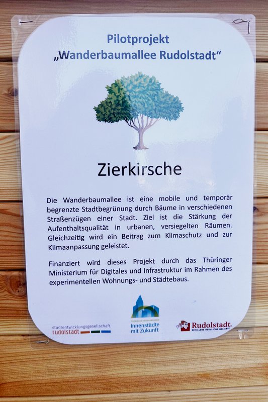 Die Wanderbaumallee ist eine mobile und temporär begrenzte Stadtbegrünung durch Bäume in verschiedenen Straßenzügen einer Stadt. Ziel ist die Stärkung der Aufenthaltsqualität in urbanen, versiegelten Räumen. Gleichzeitig wird ein Beitrag zum Klimaschutz und zur Klimaanpassung geleistet. In den nächsten Wochen werden zwei weitere Standorte in Thüringen ebenfalls grüner. Dann werden auch in Nordhausen und Pößneck eigene Wanderbaumalleen übergeben.