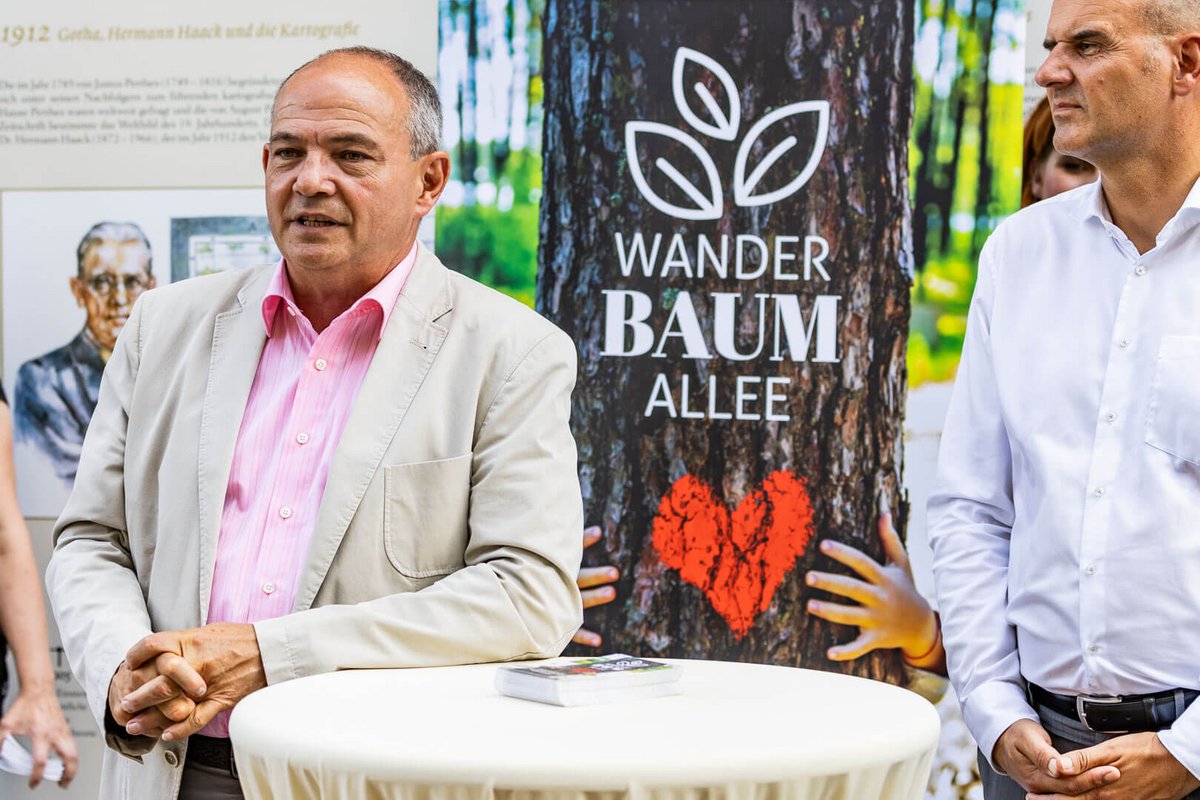 Die Eröffnung der Wanderbaumallee fand im Beisein von Staatssekretärin Barbara Schönig, Abteilungsleiter Martin Gude (Thüringer Ministerium für Infrastruktur und Landwirtschaft) sowie Oberbürgermeister Knut Kreuch, Bürgermeister Ulf Zillmann, Beigeordneter Peter Leisner, Anja Meyfarth und Elisabeth Kupfer (Stadt Gotha) statt.